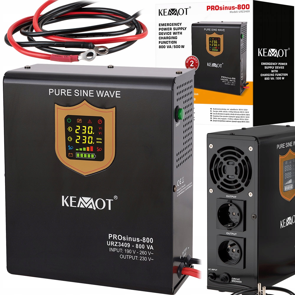 Настінний блок безперебійного живлення KEMOT PROsinus-800 - перетворювач з чистим синусоїдальним пробігом і функцією зарядки 12В 230В 800ВА/500Вт